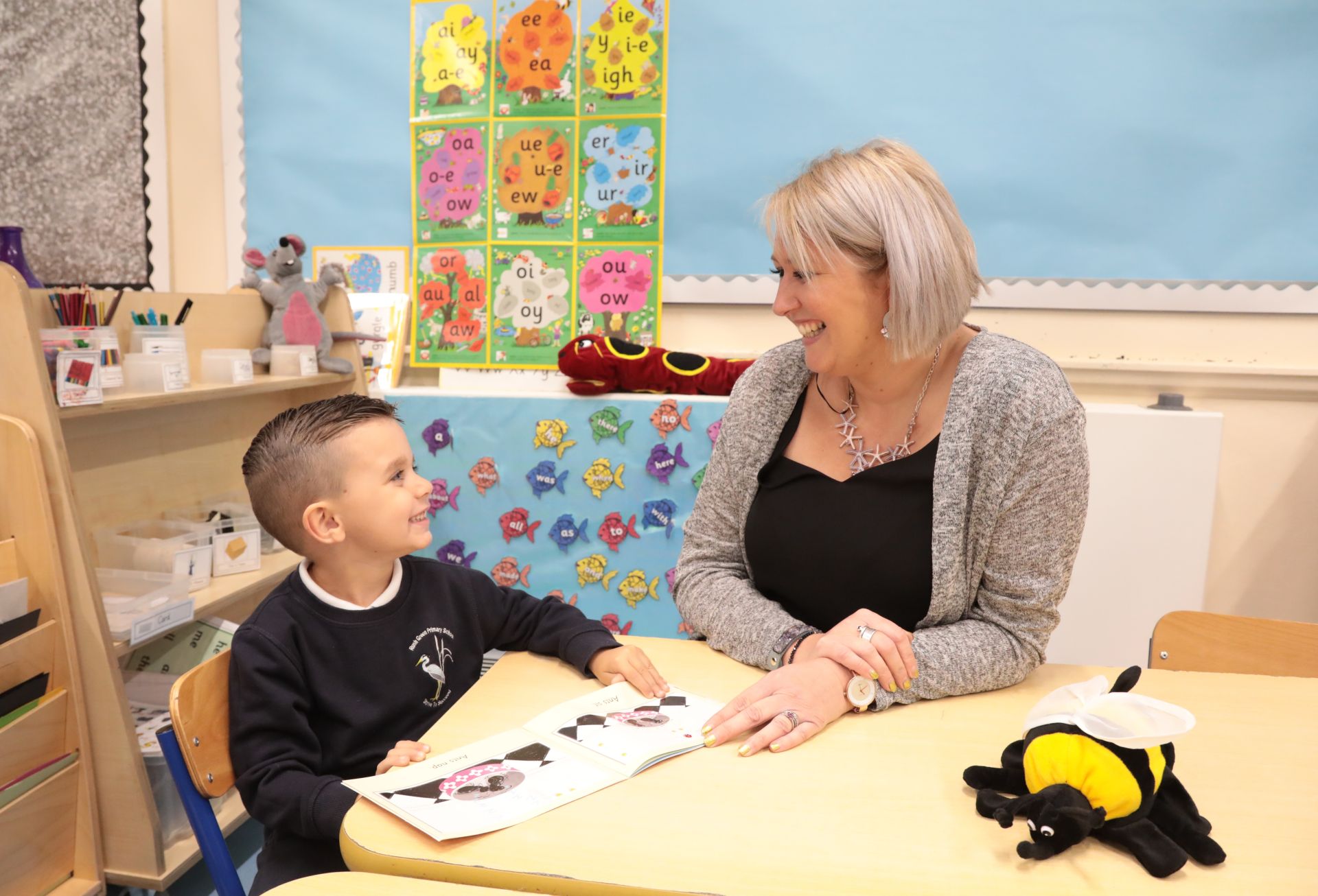 Children are taught the main letter sounds. This includes the sounds made by the alphabet letters and by digraphs, such as /sh/, /th/, /ai/, and /ue/.